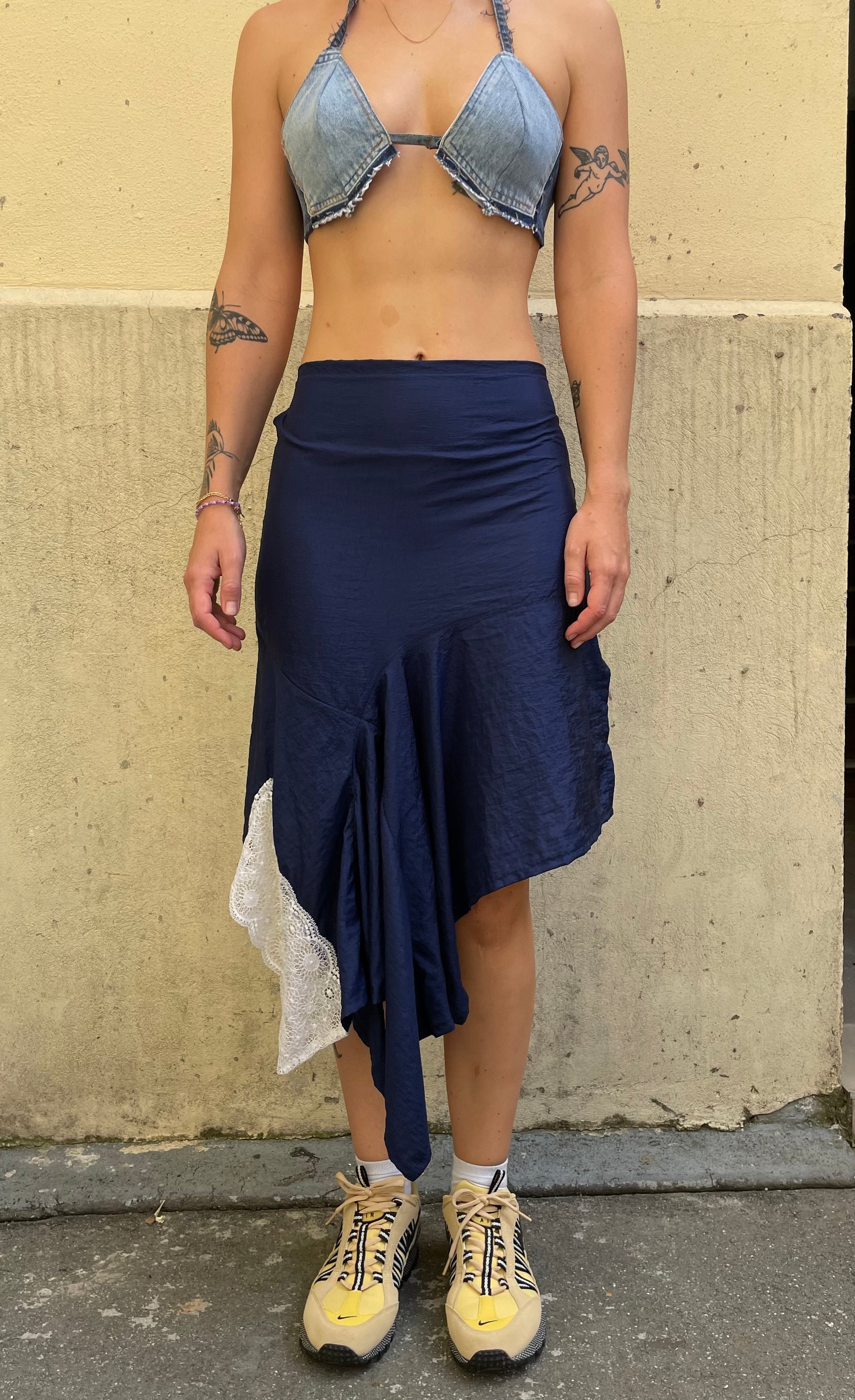 - Asymmetrical sport skirt with inserted lace